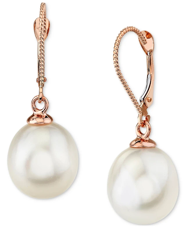 Pink Cultured Freshwater Pearl (8-1/2mm) Drop Earrings in 14k Rose Gold