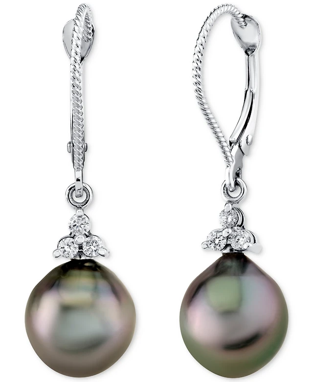 Cultured Tahitian Pearl (9-10mm) & Diamond (1/8 ct. t.w.) Drop Earrings in 14k White Gold