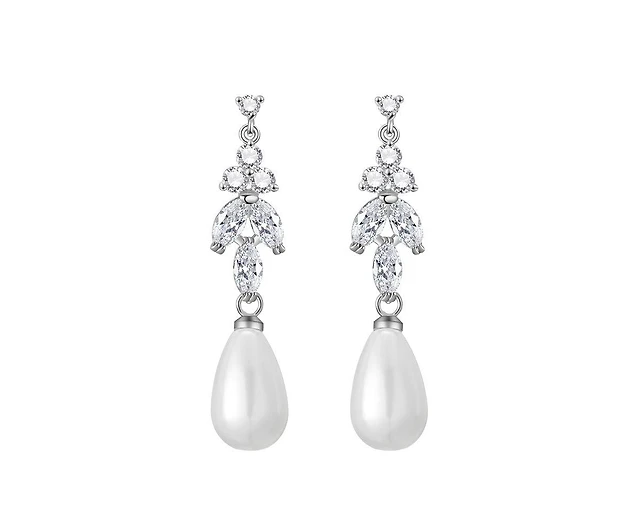 Pearl Drop Earrings with Cubic Zirconia Accents Earrings for Women