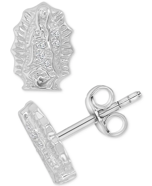 Cubic Zirconia Halo Stud Earrings in Silver-Plate