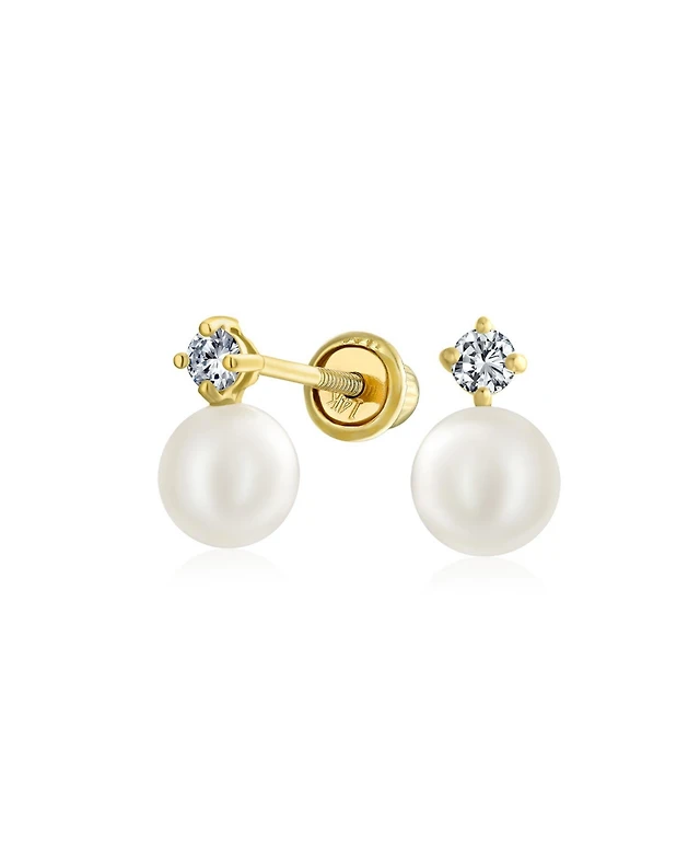 Bling Jewelry Tiny Minimalist14K Gold White Freshwater Cultured Pearl Stud Earrings Secure Screw Back