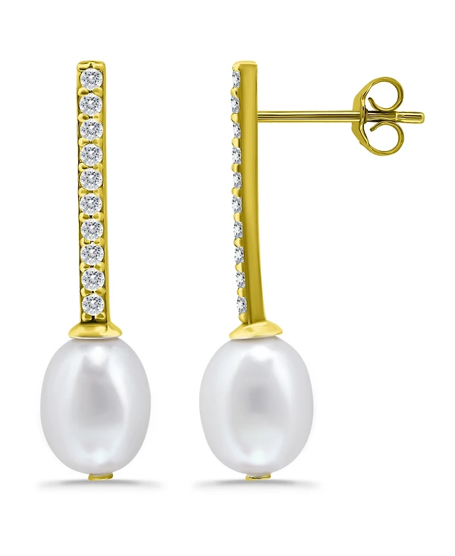 Macy's White Baroque Pearl (12mm) Flat Ball Drop Earrings in 14k Yellow Gold