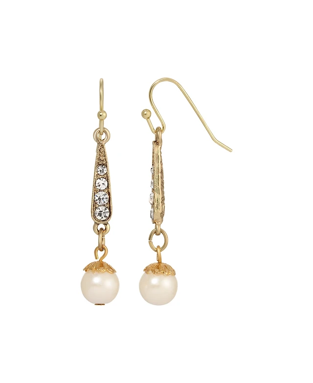 Anne Klein Gold-Tone Pave & Imitation Pearl Halo Drop Earrings