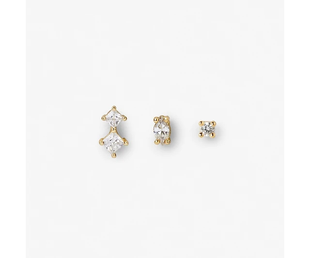 Adornia Silver Plated Cubic Zirconia Three-Solitaire Stud Earring Set