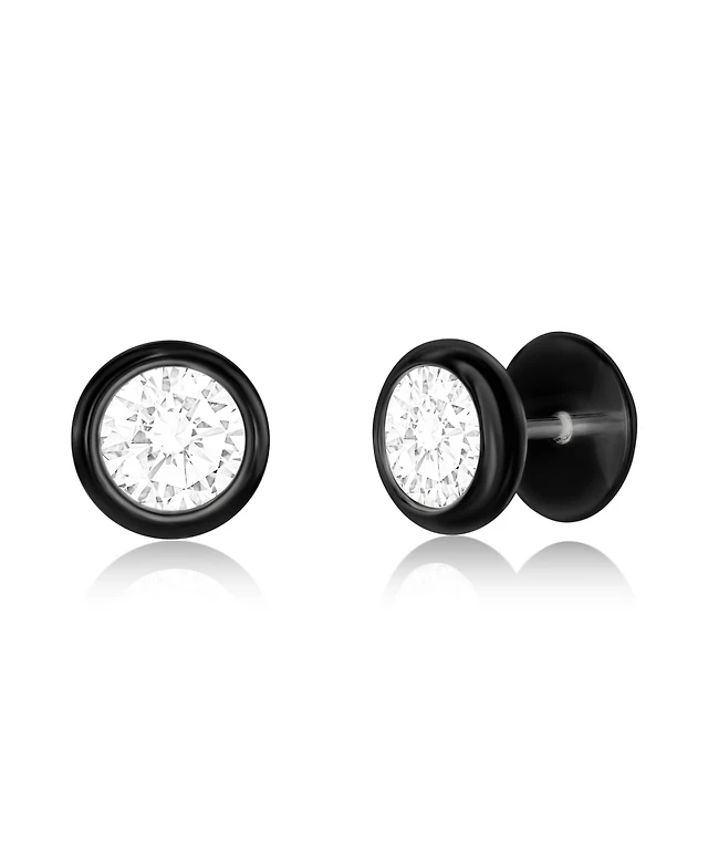 Metallo Stainless Steel Bezel-Set Cz Stud Earrings