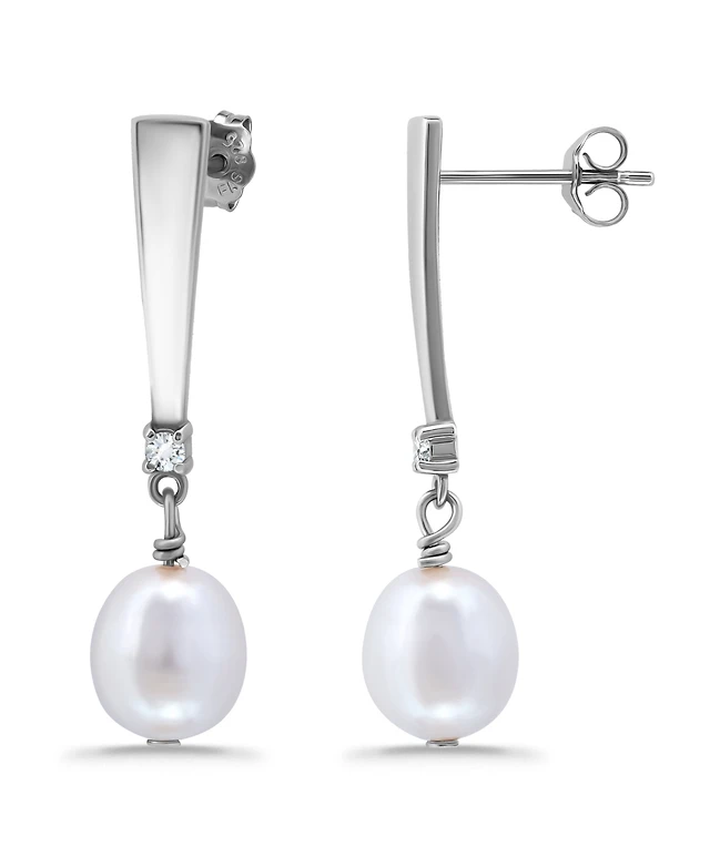 Bling Jewelry Simple Cz Pearl Teardrop Dangle Earrings Sterling Silver Lever back