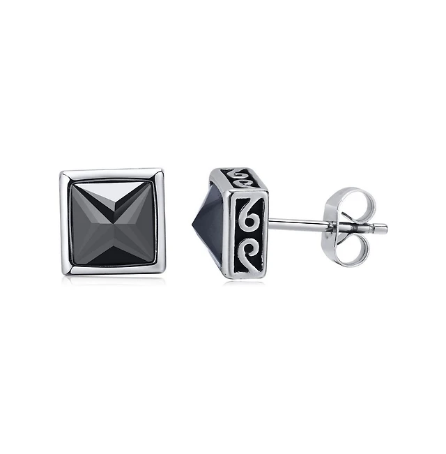 Stainless Steel Black Cz Greek Border Design Square Stud Earrings