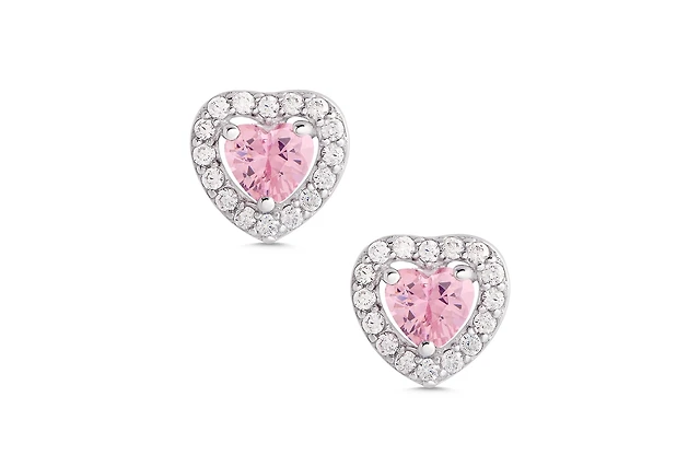 Lily Nily Girls Pink & White Cz Heart Halo Stud Earrings in Sterling Silver
