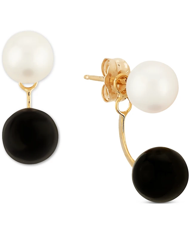 Cultured Freshwater Pearl (5mm) & Chain Front to Back Drop Earrings in 10k Gold