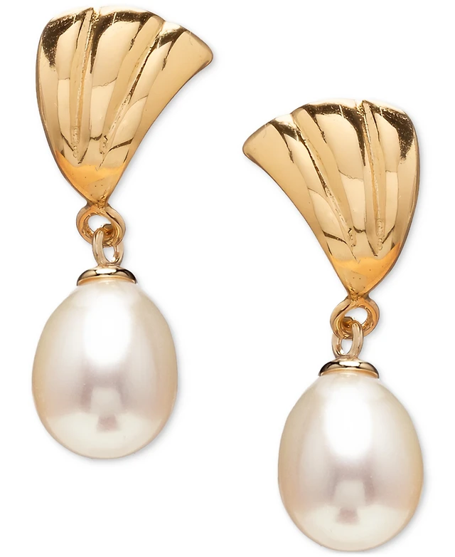 Cultured Freshwater Pearl (7mm) Chain Link Drop Earrings in 14k Gold-Plated Sterling Silver