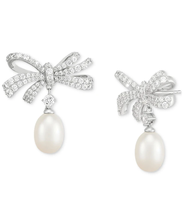 Cultured Freshwater Button Pearl (4 - 8-1/2mm) & Cubic Zirconia Vine Cluster Drop Earrings