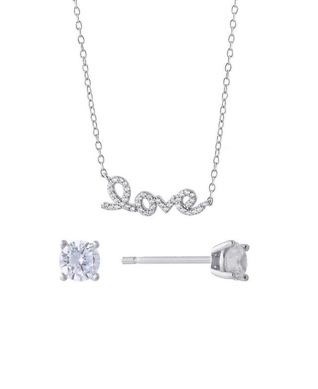2-Pc. Set Cubic Zirconia Round & Baguette Solitaire Stud & Drop Earrings in Sterling Silver