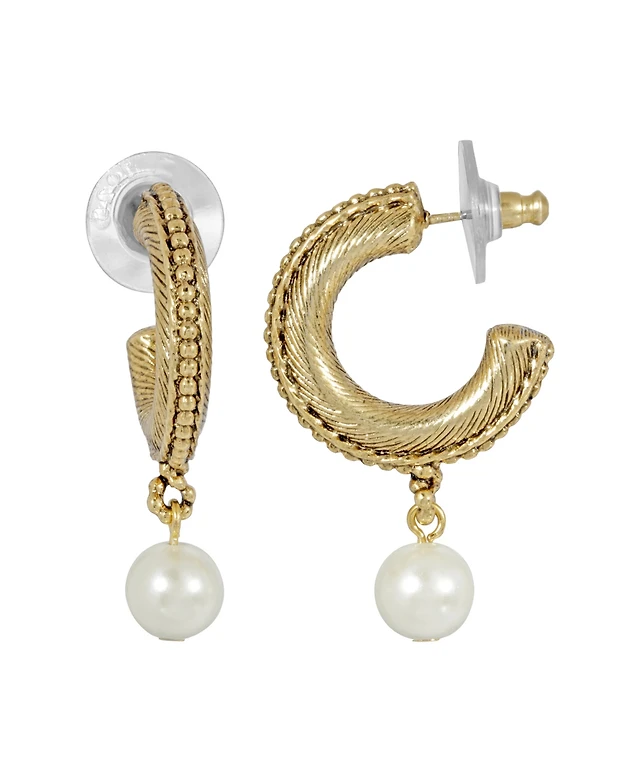2028 Women's 14K Gold-tone Imitation Pearl Drop Hoop Earrings