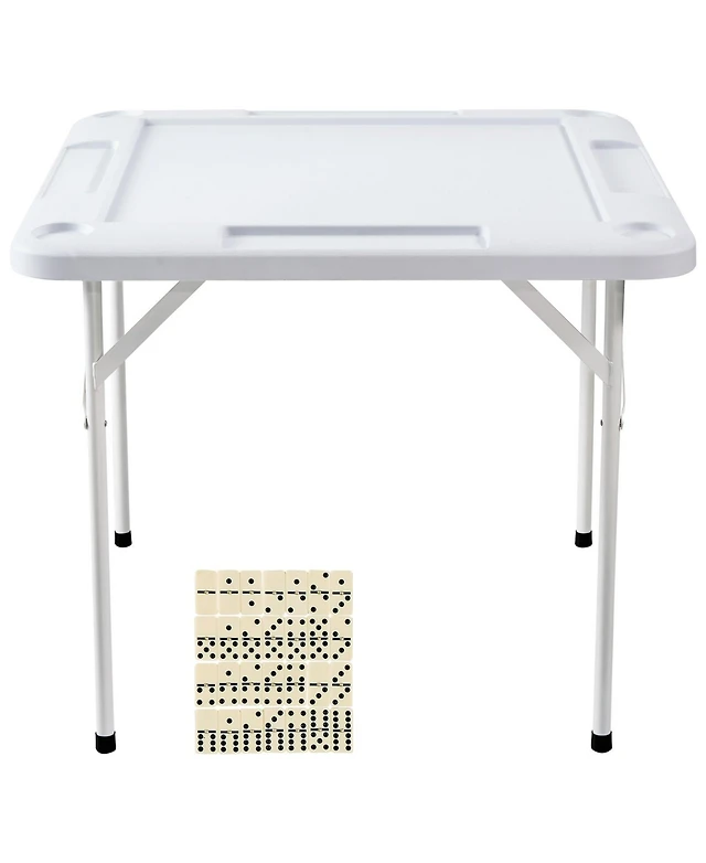 Sugift Folding Mahjong Table 4-Player Square Table with Cup Holders