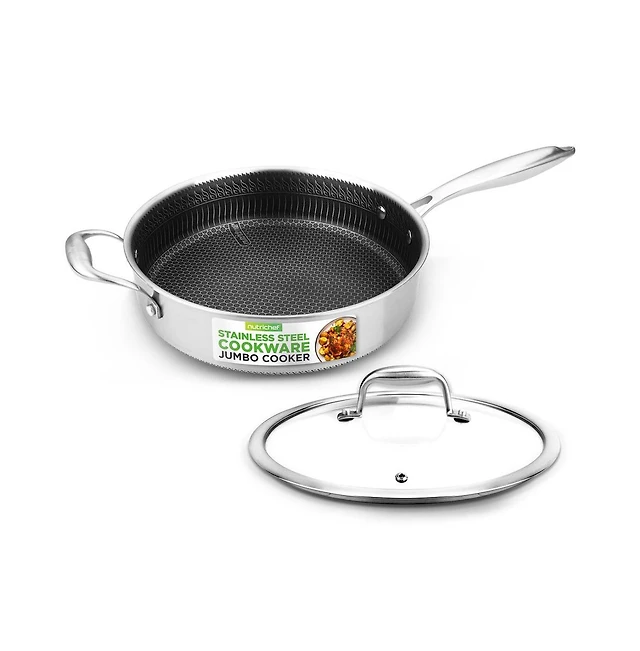 NutriChef Kitchenware Pots & Pans Set - Triply Stainless Steel Cookware, Non-Stick Coating Inside and Outside (8-Piece Set)