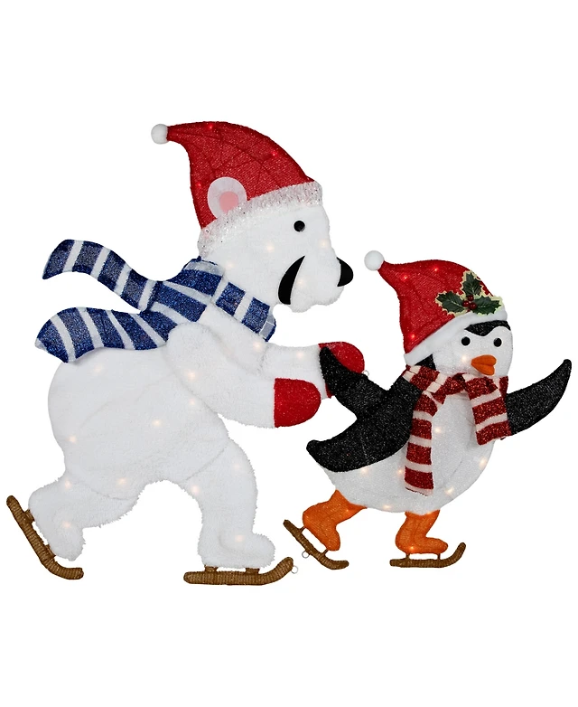 Northlight 41.25" Lighted Ice-Skating Polar Bear and Penguin Outdoor Christmas Decoration