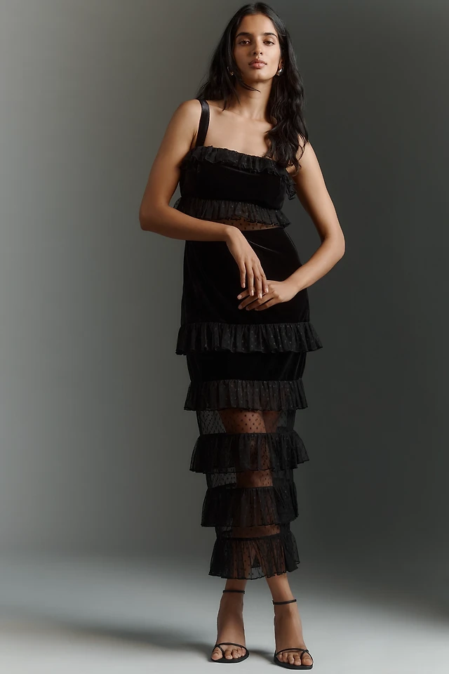 Avec Les Filles Sheer Panel Tiered Midi Dress