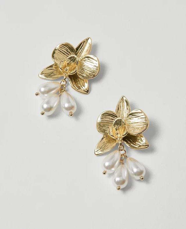 Ann Taylor Pearlized Floral Drop Earrings Goldtone Women's