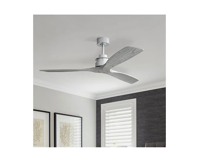 60-inch Modern Sliver 3-Blade Solid Wood Ceiling Fan Without Light With 6-Speed Remote Control and Forward Reverse Function For Indoor
