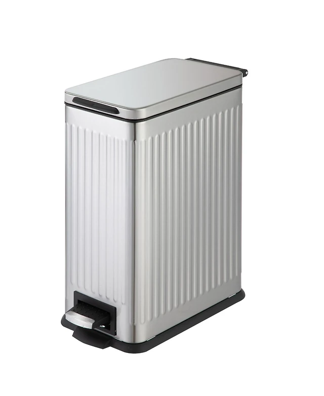 Home Zone Living 4 Gallon Slim Stainless Steel Kitchen Trash Can with Reeded Pattern, Step Pedal and Soft Close Lid