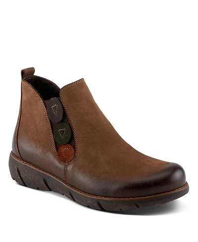 Spring Step Apso Leather Wedge Bootie with Elastic Panel, Inside Zipper, and Removable Insole