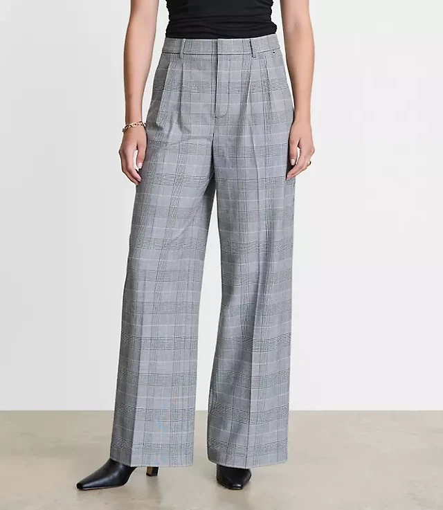 Plus Women's Tuxedo Plaid Wide Leg Suit Pants
