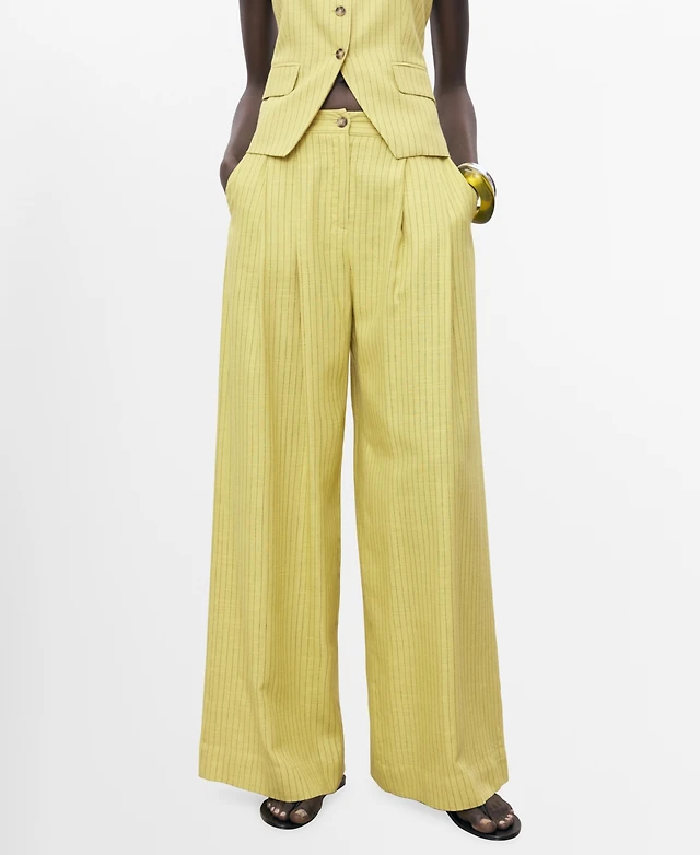 Mango Women's Straight-Fit Linen-Blend Suit Pants