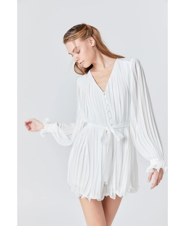 Modenaire Women's Structured Zip-Front Flutter Sleeve Pleated Romper