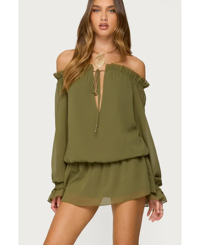 Edikted Women's Lanney Ruffled Sheer Lace Romper