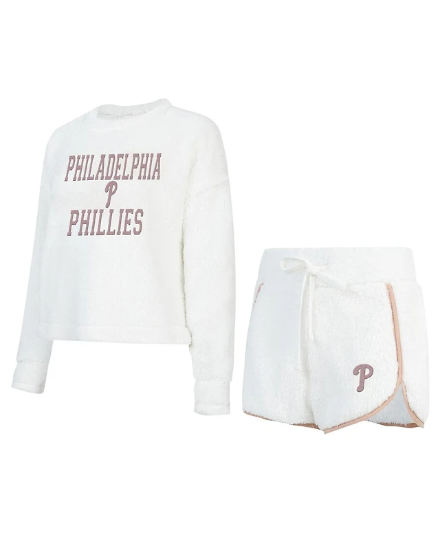 Concepts Sport Women's White Philadelphia Phillies Painter Sherpa Long Sleeve T-Shirt Short Set