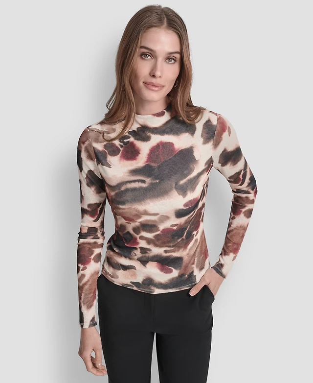 Dkny Women's Long Sleeve Fitted Funnel Neck Tissue Mesh Top