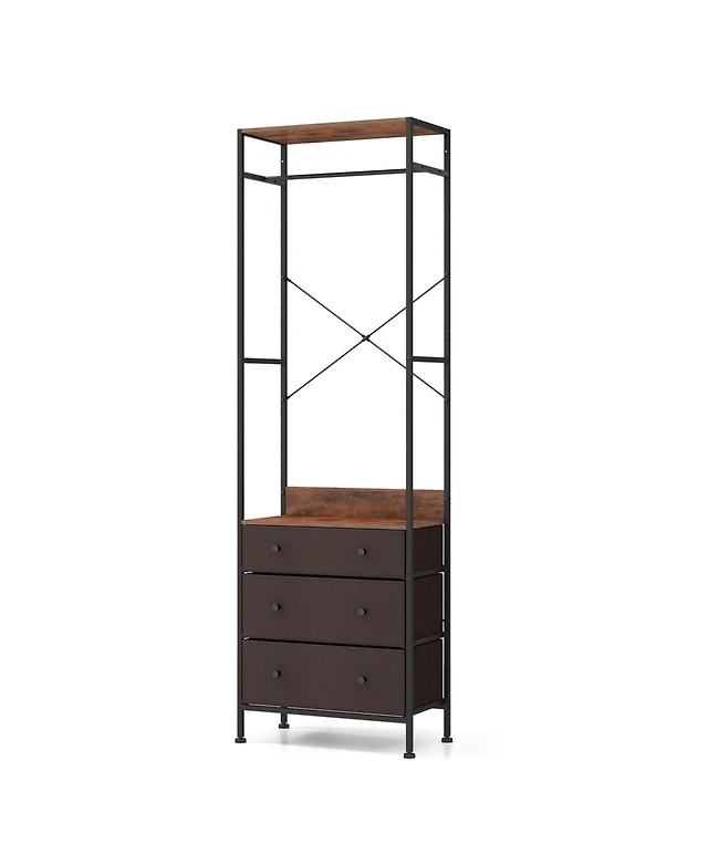 Unho Metal Clothes Rack with Wheels: Portable Garment Organizer with Storage Shelves
