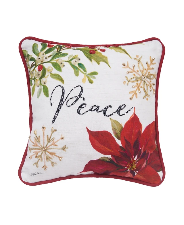 Peace Poinsettia Small/Petite Christmas Accent Pillow, 10" x 10"