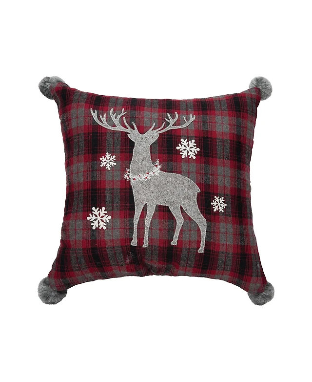 Levtex Peppermint Plaid Merry Embroidered Decorative Pillow, 18" x 14"