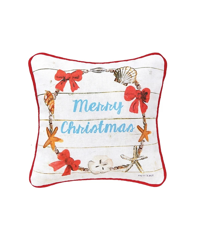 Merry Christmas Shell Wreath Printed & Woven Petite Pillow