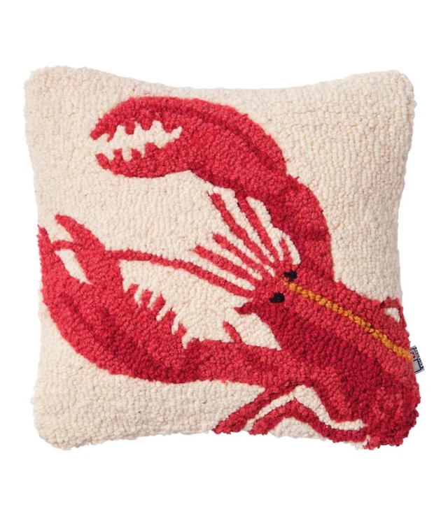 Wool Hooked Throw Pillow, Red Lobster, 14" x 14"