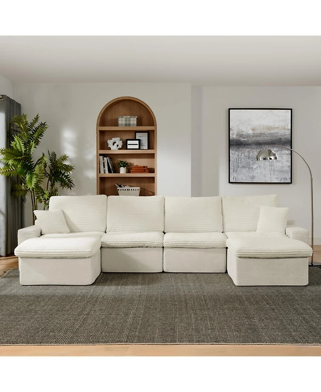 Streamdale Modern Corduroy Sectional Sofa with Footstool (White, 6-Seat)