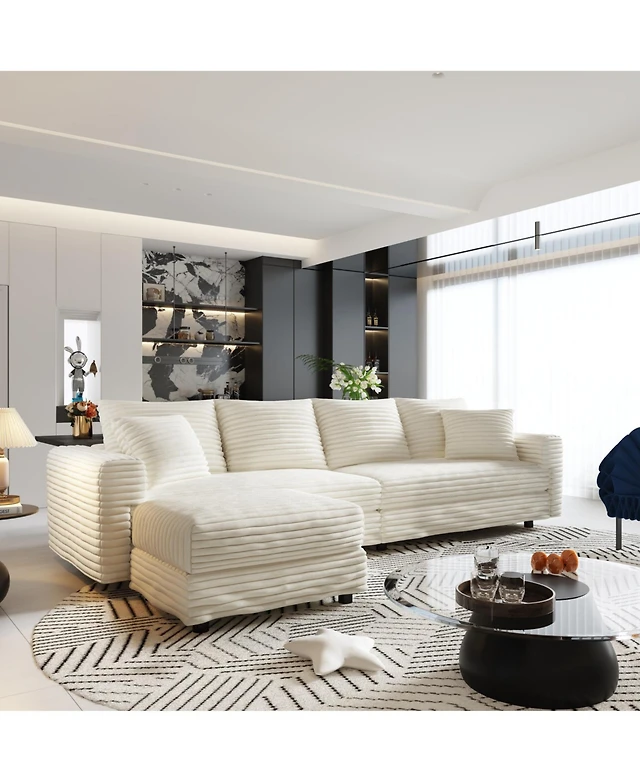 Streamdale Furniture 82.7" Plush Corduroy 3-Seat Sofa with Movable Ottoman