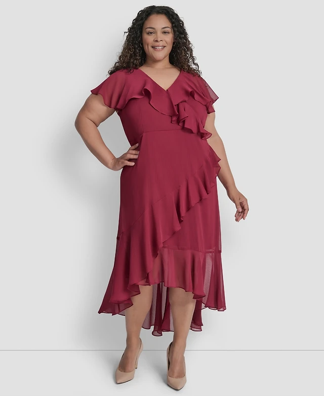 Jessica Howard Plus Boat Neck Asymmetric Side Ruched Midi Dress