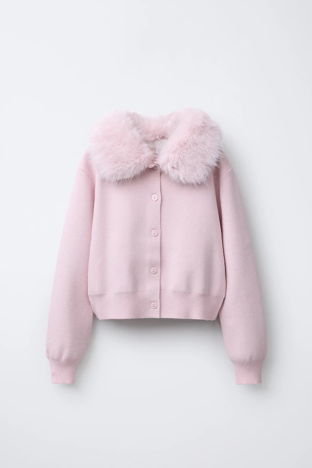 CARDIGAN WITH DETACHABLE FAUX FUR COLLAR