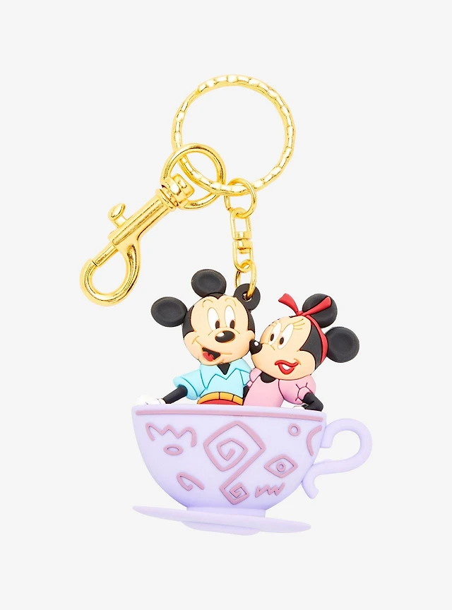 Loungefly Disney Walt Disney World 50th Anniversary Mickey & Minnie Mouse Mad Tea Party 3D Keychain - BoxLunch Exclusive
