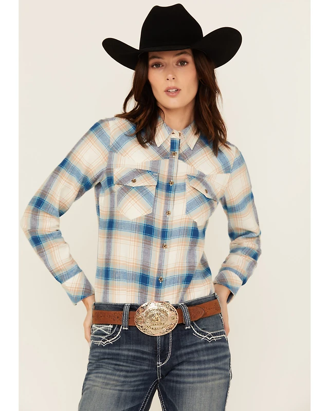 Shyanne Women's Plaid Print Long Sleeve Button-Down Stretch Western Shirt