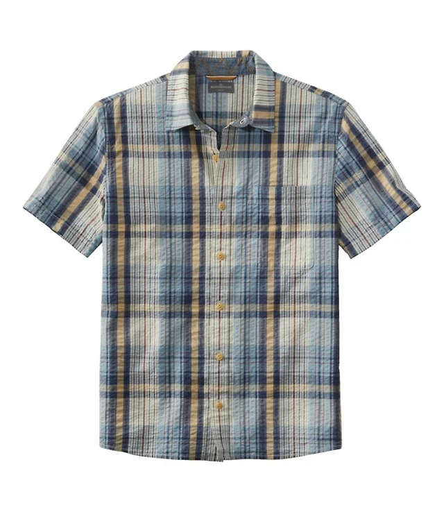 Men's Signature Seersucker Madras Shirt, Slightly Fitted, Short-Sleeve