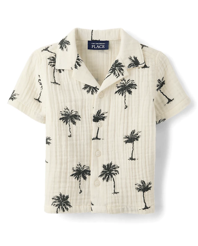 Boys Palm Tree Gauze Button Up Shirt