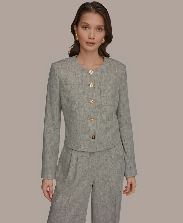 Karl Lagerfeld Paris Women's Five-Button Round Neck Jacket