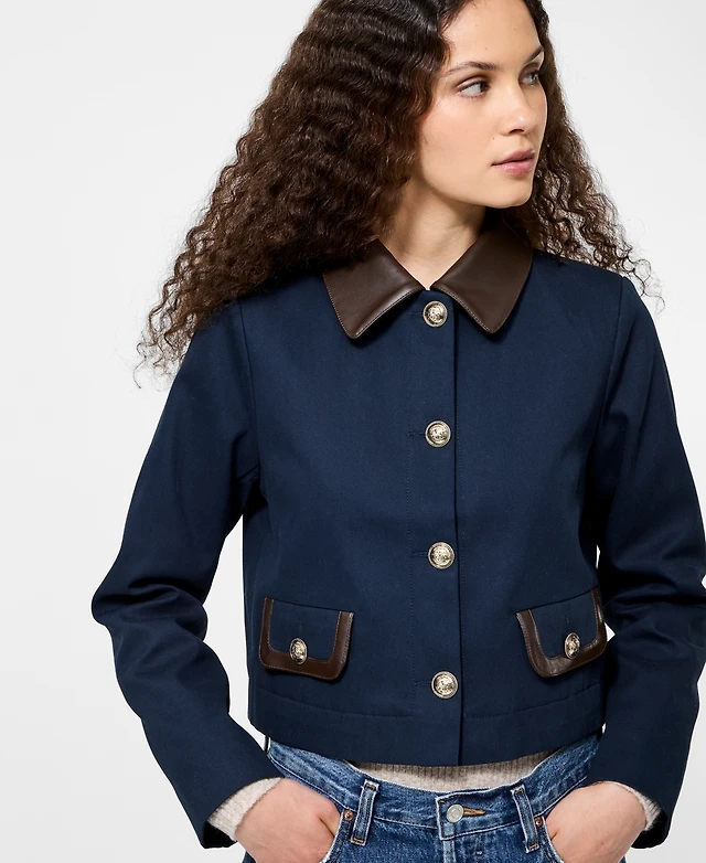 Karl Lagerfeld Paris Women's Novelty Cropped Button Front Jacket