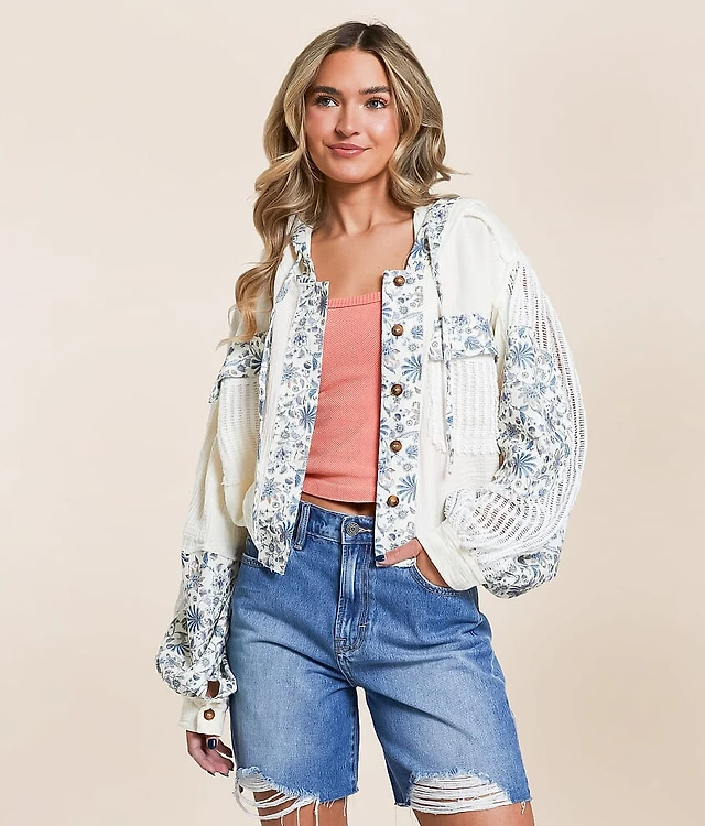 Lands' End Women's Long Sleeve Waffle Collared Shacket