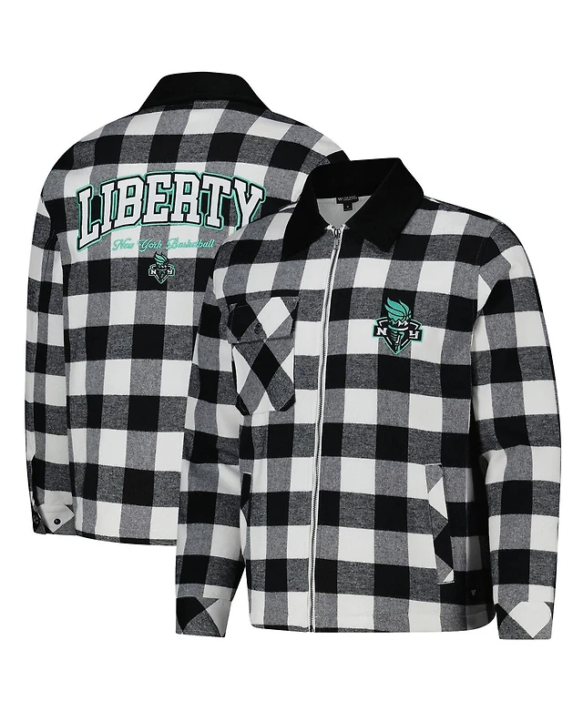 The Wild Collective Men's and Women's Black/White New York Liberty Flannel Full-Zip Shacket