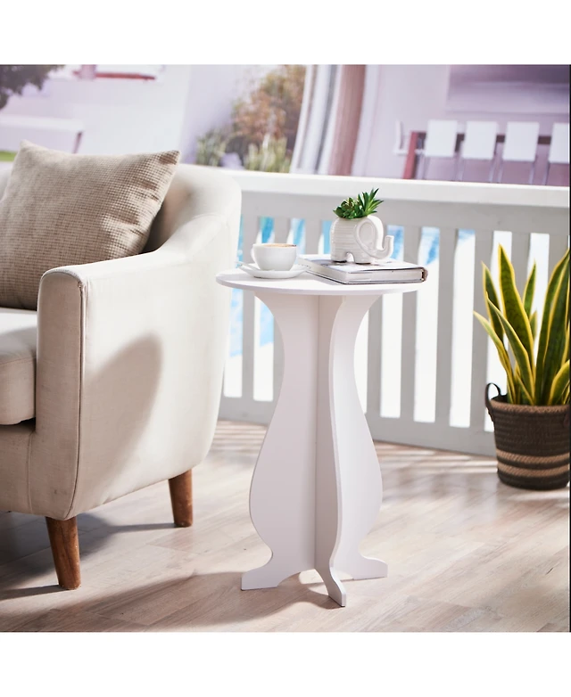 Kings Brand Furniture - Carver Side End Table Plant Stand for Living Room, Bedroom, White