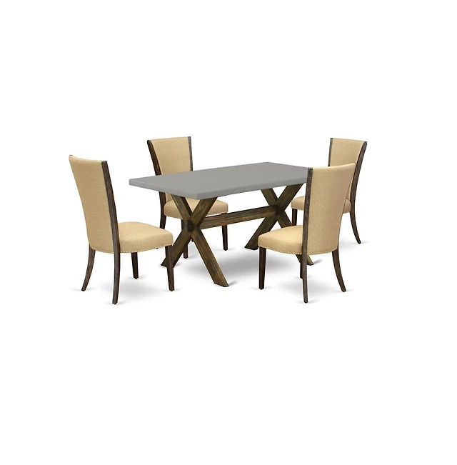 East West Furniture 5 Pc Dining Table Set Offers a Wood Dining Table and 4 Parson Chairs with Brown Color Linen Fabric, Medium Size Table with Full Ba